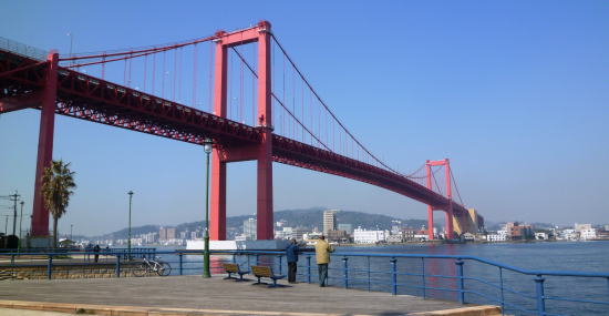 1p北九州市戸畑と若松を結ぶ若戸大橋は昭和時代の観光資源でもあり若松の街を飛躍させた