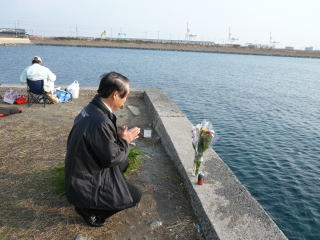 その8日過ぎた頃です。若松安瀬運河で釣人が沖で浮いている遺体を発見。その後、若松水上署、警察署から連絡が入り藤崎さんが確認し慶治君だと分かりました。2日置いて通夜に葬儀ありました。海洋磯釣俱楽部の仲間達が多く来て、藤崎さんを労わっていましたが、返す言葉が見つからないほど気の毒い。あんなに仲良しだった慶治君とお別れしましたが、海洋の会員として海の事故で亡くなった方、石松勝己さんに続いて二人目となりました。 悲しい定め。自然界と向き合う私達釣り人の有様に、もっと安全意識を高めないといけない事、多大あります。詳しくは私のホームページ「世界にたった一つの花」をご覧下さい。その後、藤崎さんとの釣行ありません。しかし「機関誌 海洋だより」→「機関紙サーフメイズJAPAN」を届ける事で友情は続いていました。釣りが少しに、畑で作物を作る事を趣味にしたのです。その事で、しょっ中、作物が贈られてきます「たまには遊びにこんね」から始まる先輩、後輩の家族ぐるみの付き合いありました。私が行橋に引越し、すぐに玄関に大きな五葉松、お祝いで植えてくれました。高価なものですが価値観分かりません。そして家族を二度、行橋に招待しました。洋子ちゃんが創作料理上手という事で、今でも奥様、家族からズーッとホメられ続けています。藤崎さんも若松高塔山から若松二島に引越しされ、新しい家で過ごされ、まだまだ畑作業が続くのですねェー。洋子ちゃんと二人、機関誌を持って行くと、必ずオジャマ虫なります。奥様や娘さんからのランチタイム、必ずあります。それで、この頃は、やや控えるようにしておりました。私より10才ほど先輩になりますから、健康を案じていましたが昨年、息子さんの元に行きました。海洋のOB会員としてのお付き合いでしたが、釣りクラブに参加できなくても家族と家族の付き合いができる事は互いに幸福です。でも、それがシニア世代になってくると寂しい場面が、しょっ中ある事、気になります。いずれ私もですが、このような文章を書き、家族の方が読み、ネット社会で繋がる釣り仲間に、海洋磯釣俱楽部との関係者、皆さんに報告できる事、感謝です。そして魚釣りの趣味を持つ方が増え、家族や職場、会社で多くの方とコミュニケーションできる事を期待します。そして藤崎好夫さんがリーダーとして始めた、釣り場美化、活動は海洋の基本的なプログラムを発展させ、釣界に多大な影響を与え「来た時よりも奇麗な釣り場」の精神は、まず私から、そして貴方からアクションを起こす事を、お願いしペンを置きます。愛神